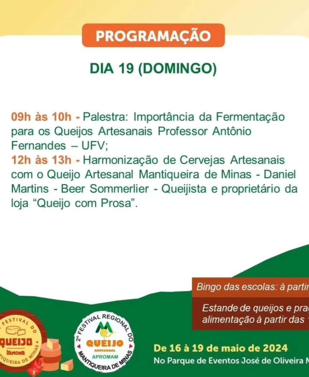 09h às 10h – Palestra: Importância da Fermentação para os Queijos Artesanais – Professor Antônio Fernandes – UFV