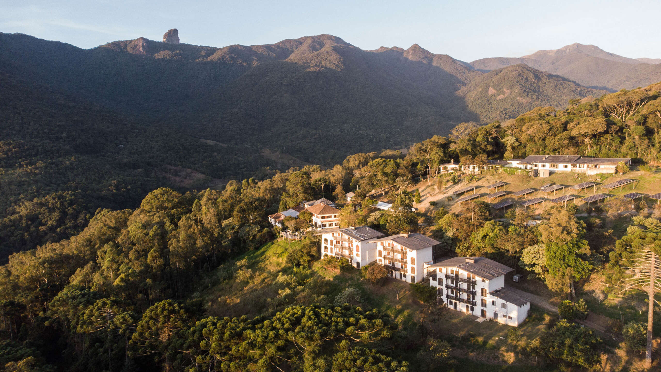 Somos uma Reserva Ambiental e possuímos aptos conjugados com dois quartos, sendo estes: um quarto casal e um solteiro (com duas camas), banheiro privativo no apto, varanda com vista de horizonte de montanhas e muito mais pertinho dos quartos, como: cachoeiras, trilhas, 284 espécies de aves. Além das estruturas de apoio para atividades em áreas naturais, possuímos roteiros ecoturísticos internos, com atividades de caminhadas com diferentes níveis de dificuldade e circuitos para mountain bike. E, roteiros externos com atividades de caminhada e escalada no Mona Picu, no Parque Nacional do Itatiaia e no Parque Estadual da Serra do Papagaio.