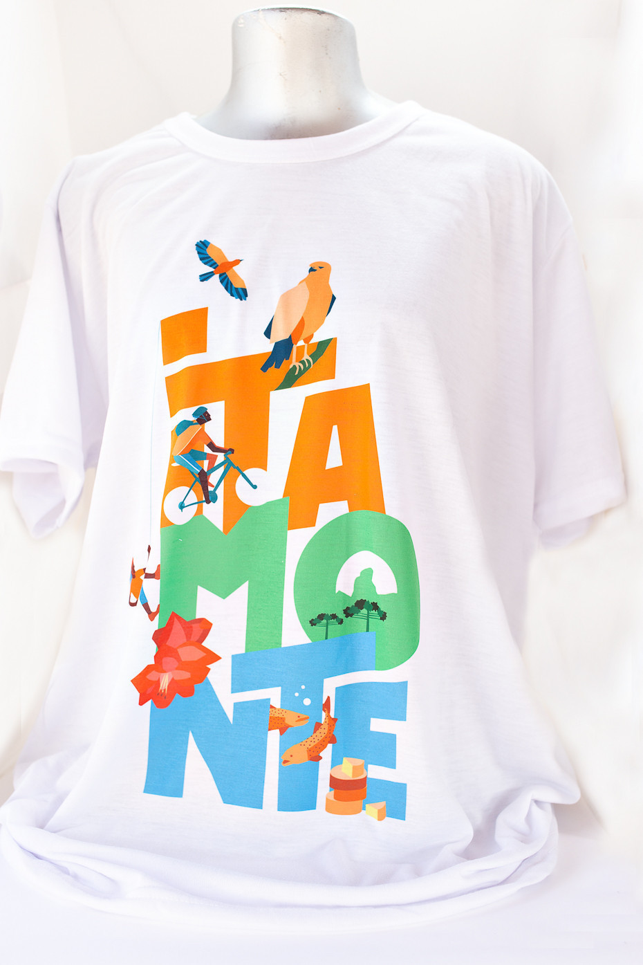 Camiseta unisex, sublimada com imagens representativas de Itamonte, tecido malha 100% poliéster.
