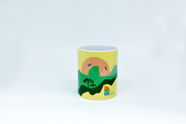 Caneca de cerâmica 325ml, estampada com imagens representativas de Itamonte.