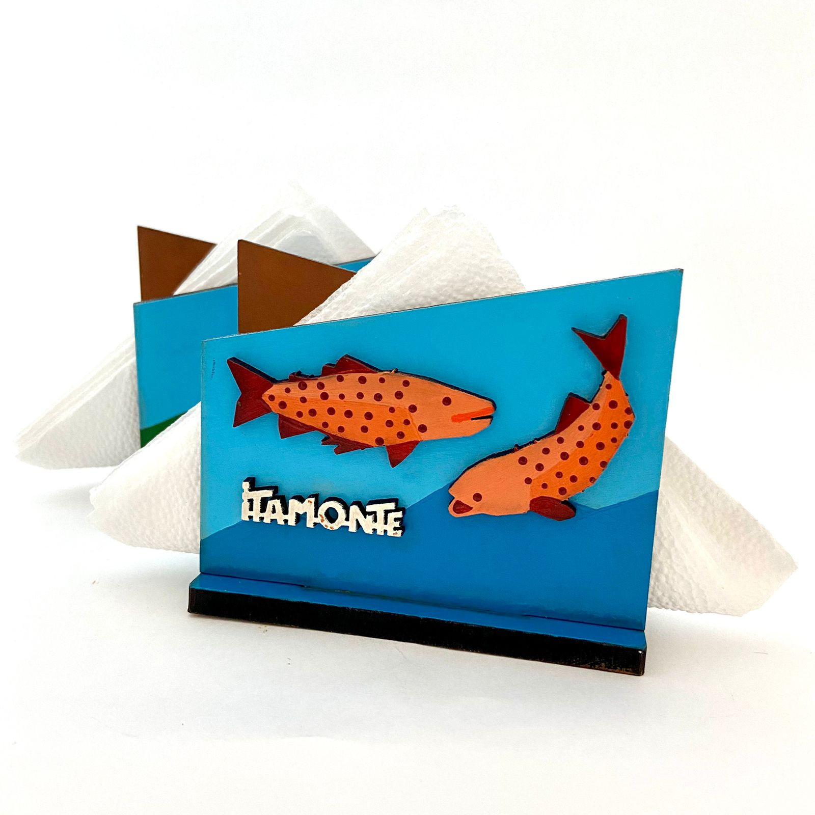 Porta guardanapo em MDF com imagem representativa de Itamonte em alto-relevo. Pintura acrílica e acabamento em verniz brilhante.