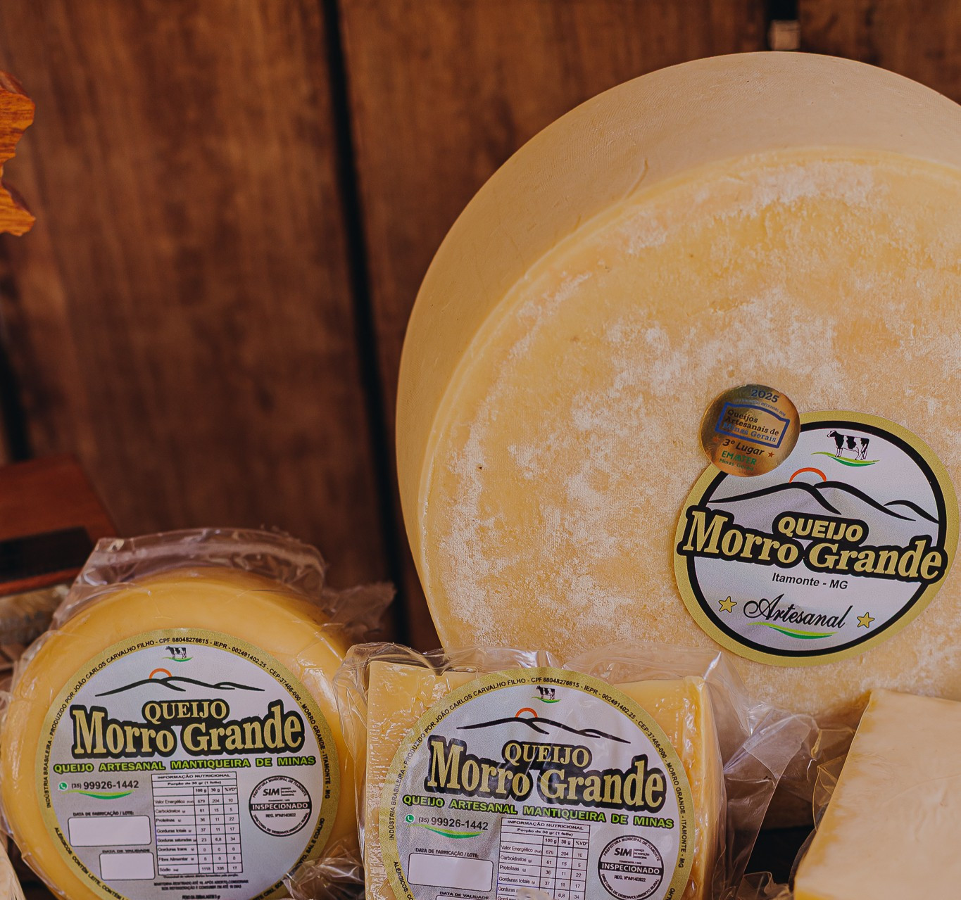 Queijaria: Morro Grande Tipo de queijo: Mantiqueira de Minas Tempo de maturação: Supermaturado – acima de 6 meses. Peso médio: A massa é distribuída em formas de 1/2kg, 800gr, 3kg e 5kg Descrição: É um queijo de massa cozida, feito