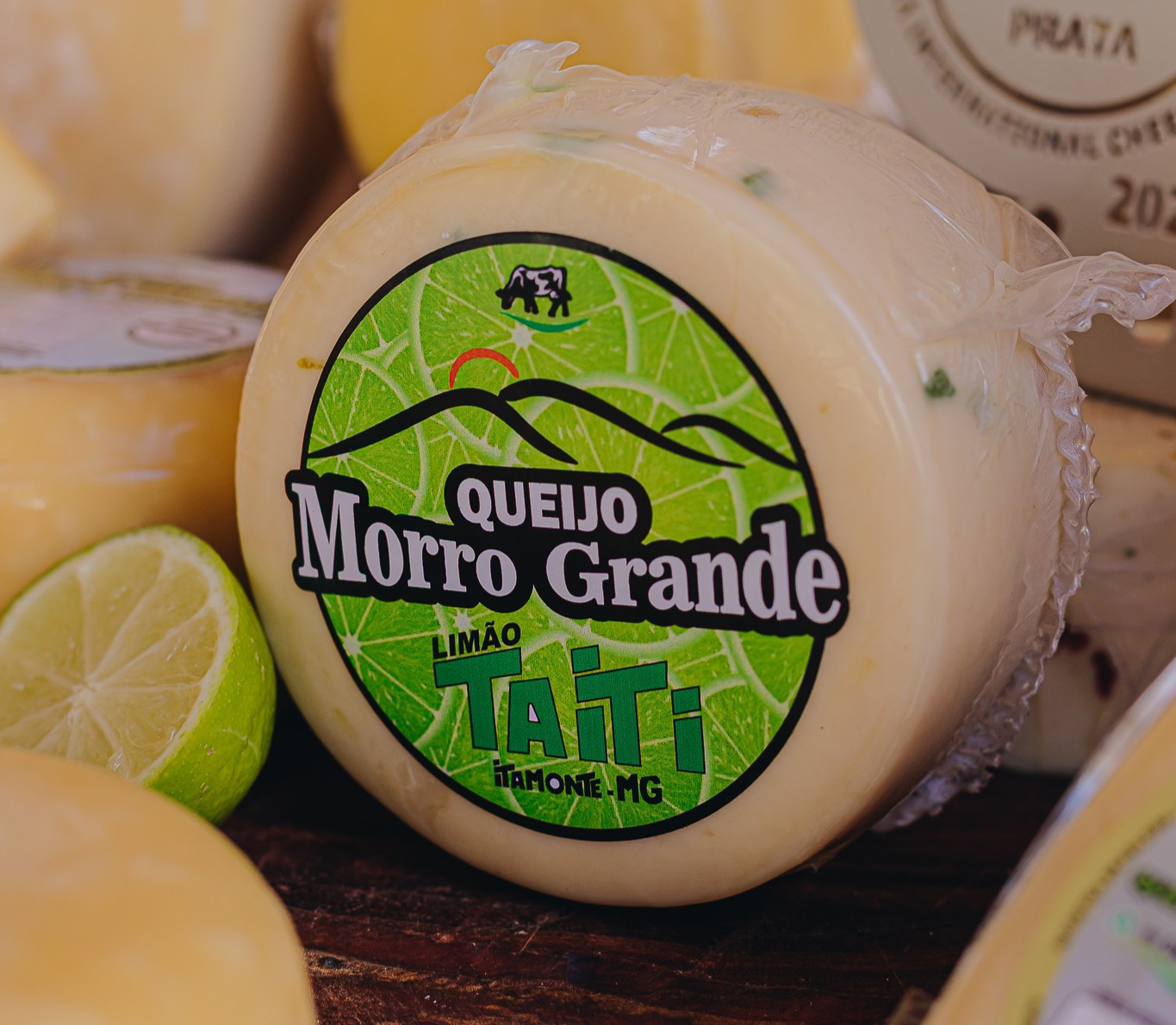 Descrição: O queijo Mantiqueira de Minas que leva o nome de Taiti, é um queijo autoral maturado, de massa cozida e produzido com leite cru, fermento natural, coalho, sal e um especial toque de limão taiti. Prensado em formas de 1/2kg, 800gr, 3kg e 5kg.
