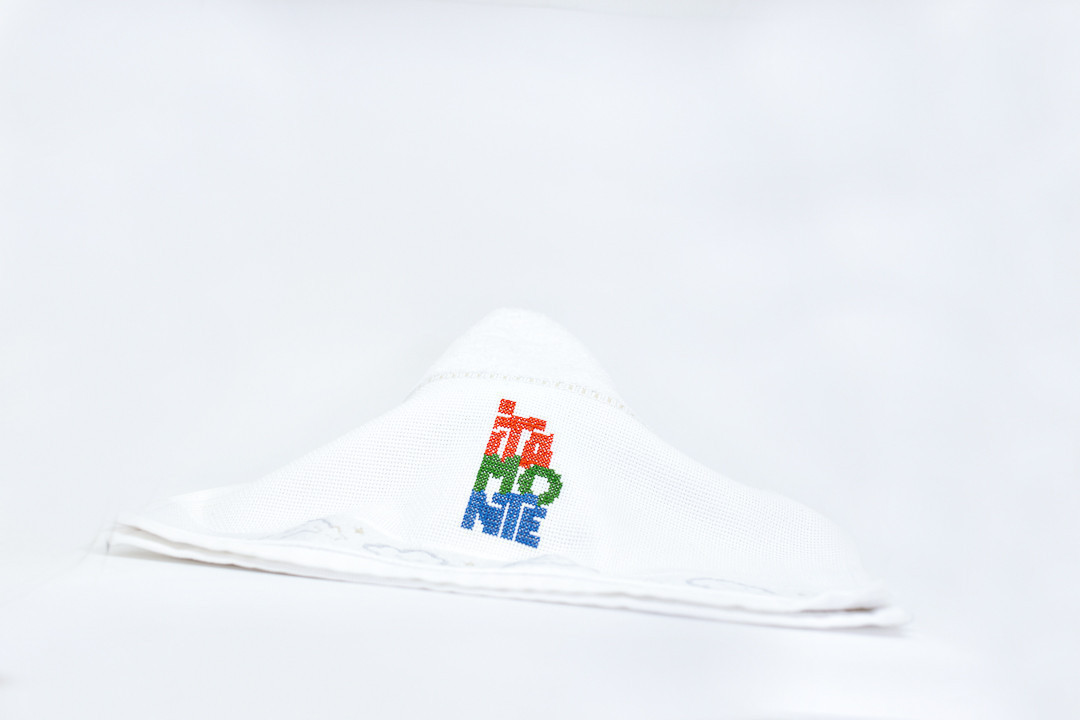 Toalha de rosto branca, 100% algodão, bordada em Ponto de Cruz com imagens representativas de Itamonte.